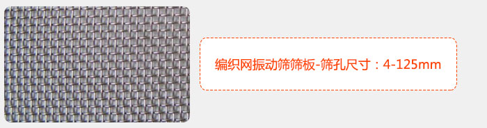 编织网振动筛筛板是用压有弯扣的金属丝编织而成的,筛孔形状为方形或长方形。其优点有:重量轻、开孔率高;而且在筛分过程中,由于金属丝具有一定的弹性,而作高频振动,使粘在钢丝上的细粒物料脱落,从而提高筛分效率。适用于中细粒级物料的筛分。但是它的缺点是使用寿命较短。编织网筛面分粗孔和细孔两种。粗孔编织筛网的制造材料,有低炭结构钢丝、弹簧钢丝和不锈钢丝等。筛孔尺寸一般为:4-125mm,钢丝直径为1.6-12.5mm。细孔编织网一般由低碳钢、黄铜、锡、锡表铜和不锈钢等材料,有专门的编织机编织而成。其开孔率为:36%-80%,筛孔尺寸为:0.03-16mm。适用的筛体角度为:18°-30°。