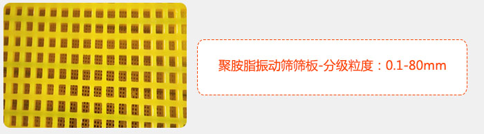 聚胺脂振动筛筛板是一种高分子弹性振动筛筛板,它具有优异的耐磨、耐油、耐水解、耐菌、耐老化性能。该振动筛筛板不仅可大幅度减轻设备重量,降低设备成本,延长使用寿命,而且降低噪音,广泛应用于矿山、冶金、煤碳、焦炭、洗煤、石油、化工等行业振动筛洗选分级作业。聚胺脂振动筛筛板孔的形状有:梳齿、方孔、长孔、圆孔及条缝式等。物料的分级粒度:0.1-80mm